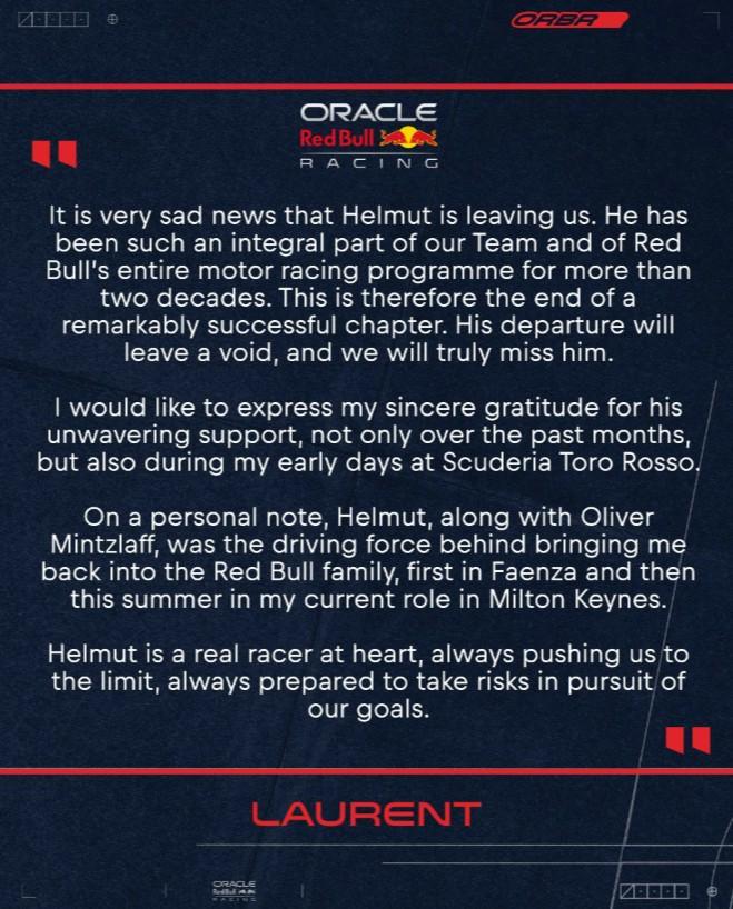 北京时间12月9日,F1红牛车队正式宣布,担任车队20多年的高级顾问马可离开车队。红牛队的负责人宣布马可离开了我们。这是一个非常悲伤的消息。他在我们的团队和项目生涯中发挥着不可替代的作用。他的离开标志着一个时代的结束。他的离开将留下一片空白,人们将怀念他。我谨对他在过去几个月以及我在红牛二队期间的持续支持表示诚挚的谢意。对我自己来说,马科和明茨拉夫在我重返红牛大家庭的过程中发挥了重要作用。首先是在法恩扎,然后今年夏天在米尔顿凯恩斯担任我目前的职务。马可是一位真正的赛车手,他总是鼓励我们突破极限,并始终对我们所追求的目标负责。 。 Marko 与红牛的关系可以追溯到 1999 年,当时红牛赞助了 RSM Marko 车队,Marko 创立并以 Red Bull Yo 的名义运营。乌斯队。 2001年,在Marco领导的欧洲车手发展计划中,与红牛的合作得以发展。自2005年起,马可担任红牛F1车队顾问,负责车手培训。他培养了15名F1车手,包括维特尔、维斯塔潘、里卡多、塞恩斯、加斯利等。他培养的F1车手总共赢得了8次WDC和137次大奖赛胜利,现在他将离开这个管理职位。